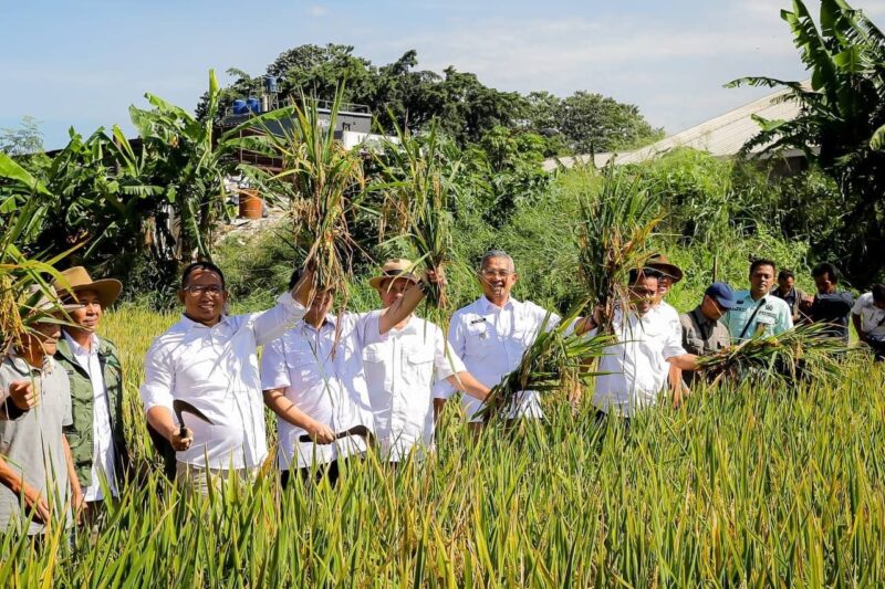 Di Kota Bandung, acara Panen Raya Serentak dilakukan bersama Dinas Ketahanan Pangan dan Pertanian (DKPP), aparat kewilayahan Rancasari, dan Kelompok Tani Makmur, di Jalan Kali Cidurian, Kelurahan Cipamokolan, Kecamatan Rancasari, Senin 7 April 2025.