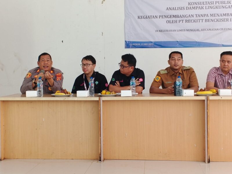 Pemerintah Desa Limusnunggal, Kecamatan Cileungsi, Kabupaten Bogor bersama warga Desa Limusnunggal menggelar konsultasi Publik dengan PT. Reckitt Benckiser Indonesia terkait Analisis Dampak Lingkungan (AMDAL) yang digelar di Aula Kantor Desa Limusnunggal, Senin (19/05/25).