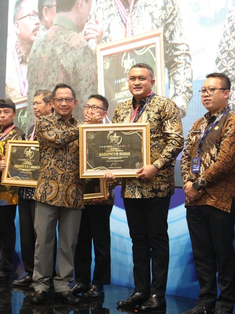 JAKARTA-Pemerintah Kabupaten (Pemkab) Bogor kembali meraih juara pertama pada penganugerahaan Standar Pelayanan Minimal (SPM) Awards tahun 2025 kategori kabupaten berkinerja terbaik dari Kementerian Dalam Negeri (Kemendagri) Republik Indonesia. Penghargaan diserahkan Menteri Dalam Negeri, Tito Karnavian kepada Bupati Bogor, Rudy Susmanto, di Ruang Serbaguna, Ditjen Bina Pembangunan Daerah, Kementerian Dalam Negeri, Jakarta, Jumat (23/5).