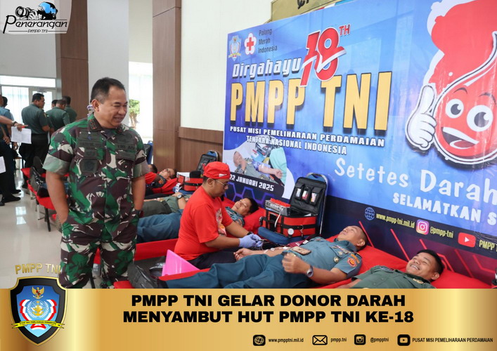 SENTUL, –Pusat Misi Pemeliharaan Perdamaian (PMPP) TNI menggelar kegiatan Donor Darah dalam rangka menyambut Hari Ulang Tahun (HUT) PMPP TNI ke-18 Tahun 2025 bertempat di Auditorium PMPP TNI Sentul Bogor. (22/01/2025).