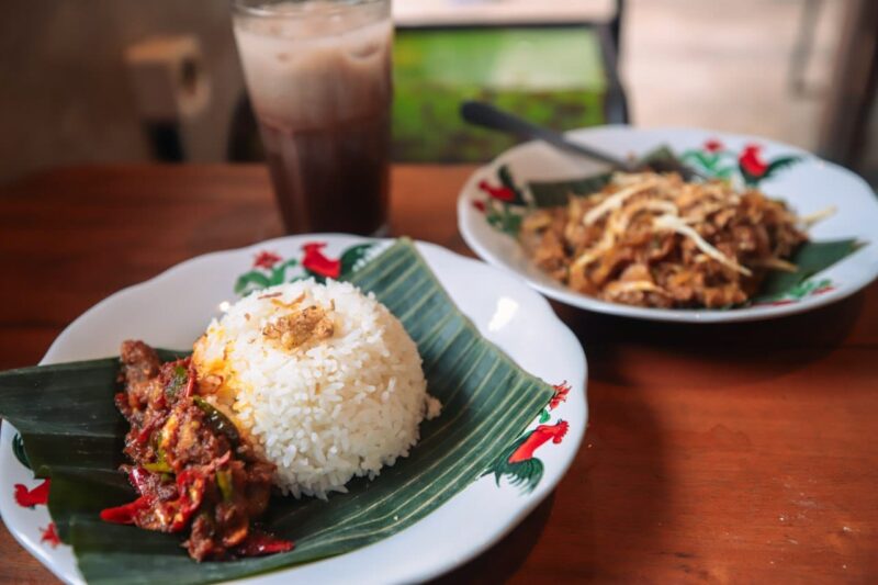Selain itu, ada pilihan makanan ringan seperti pisang goreng dan tahu lada mulai Rp12.000, serta makanan berat seperti oseng jando dan chicken katsu mulai Rp20.000.