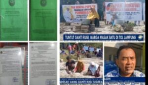 “Ada apa ya Tol Lampung Selatan?? banyak menuai konflik, tanah warga yang sudah di tempati turun temurun di klaim masuk tanah kawasan HP ( Hutan Produksi/regester). Ujungnya banyak pengaduan di PN Kalianda dan sudah menang sampai tingkat Makamah Agung tapi tak sama, ada yang sudah dapat uang ada yang belum dapat ganti rugi tanah tol”. Ungkapnya
