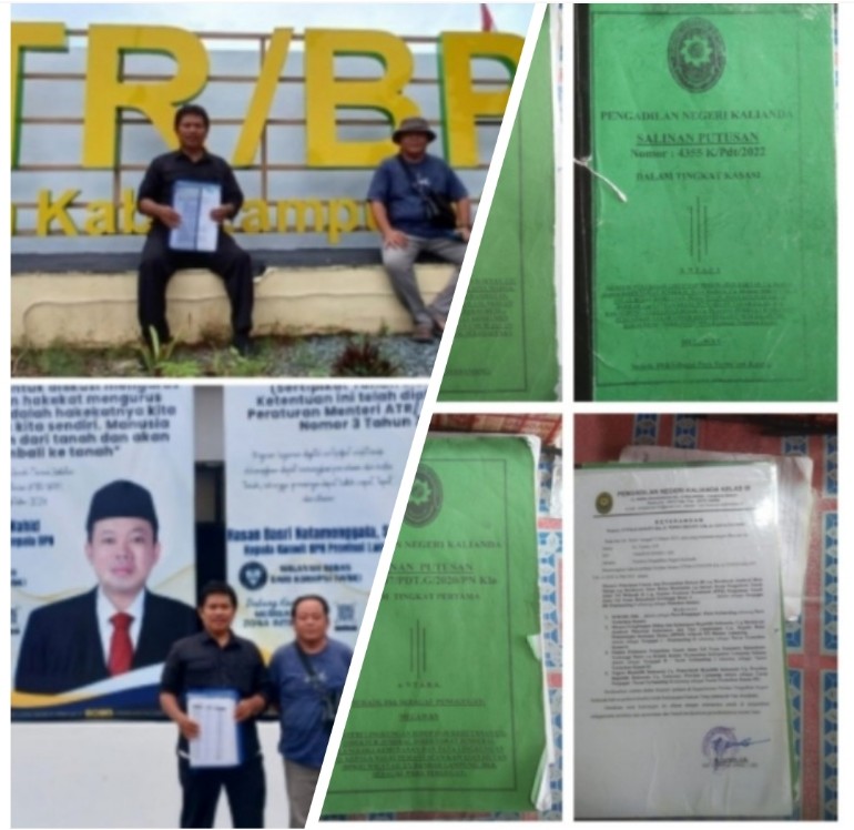 “Perlu diketahui, tanah kami ada Validasi dari BPN dengan luas tanah jumlah 20 hektar dan ada data nomenatif dengan jumlah total uang 20 milyar, tapi kok cuman tulisan dan data dari BPN Lampung Selatan saja. Kami juga punya surat salinan putusan PN Kalianda sampai Mahkamah Agung sudah Inkracht keputusan hukum tetap, kami juga bayar pajak PBB”. Beber Suradi.