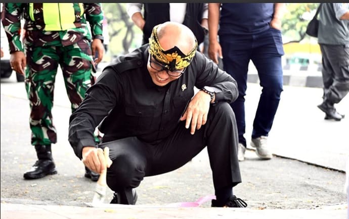 Pimpinan DPRD Kota Bandung, Dr. H. Edwin Senjaya S.E., M.M., memimpin kerja bakti dalam rangka Hari Bersih-bersih Sedunia (World Cleanup Day), di Lapangan Senbik, Bandung, Rabu, 24 September 2025. Robby/Humpro DPRD Kota Bandung