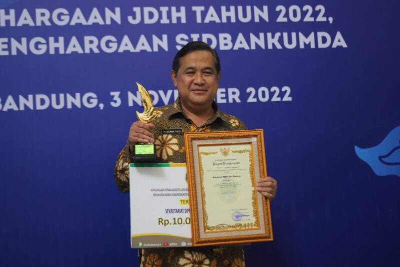 Mendiang H. Mohamad Salman Fauzi, saat menerima penghargaan JDIH bagi DPRD Kota Bandung, di Gedung Sate, November 2022. Nuzon/Humpro DPRD Kota Bandung.